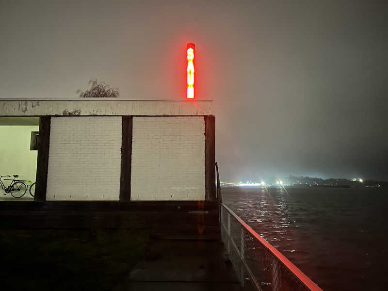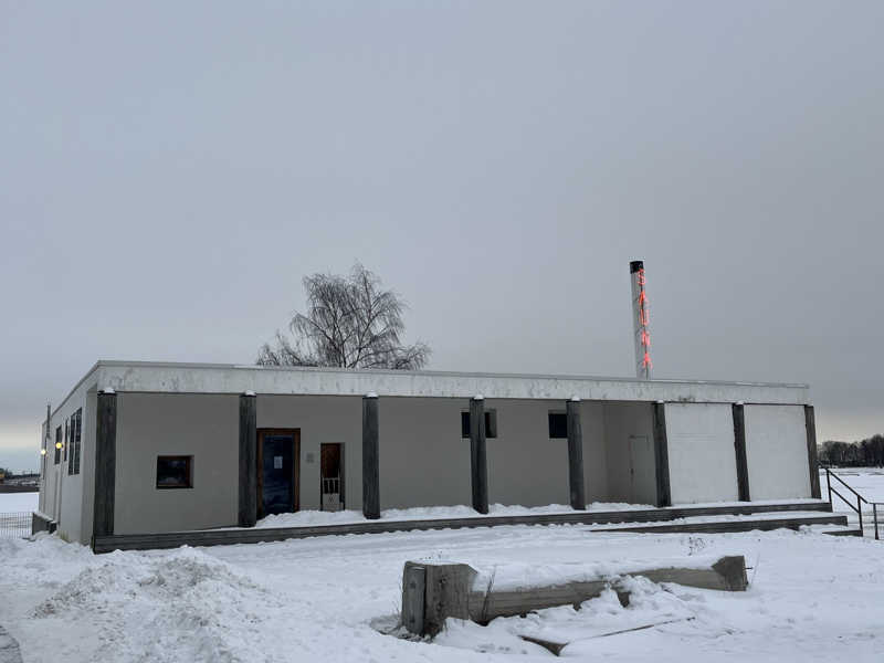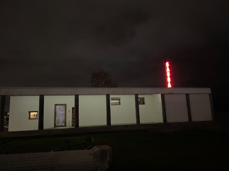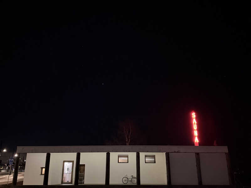バルト海沿いまわりに何もなく、白い平屋に縦看板に赤いネオンサインで『SAUNA』と書かれているためはっきりここだと分かった!