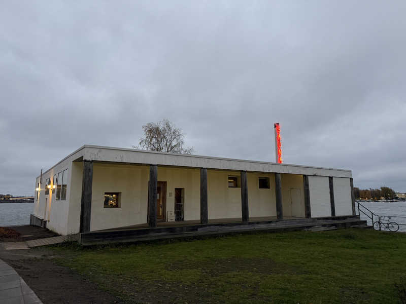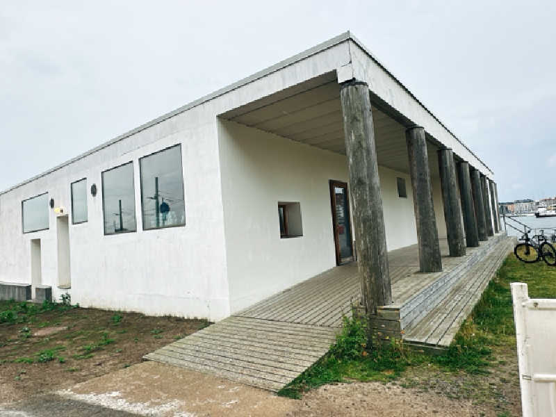 海沿いのところに、おしゃれな建物がポツンと佇んでおり、空間も含めてワクワクする。