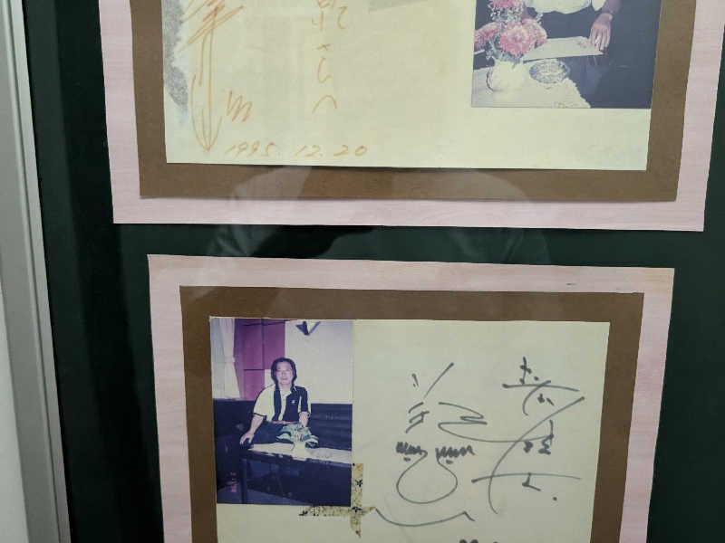 エレベーターには色褪せた有名人のサイン。もはや誰かもわからない。