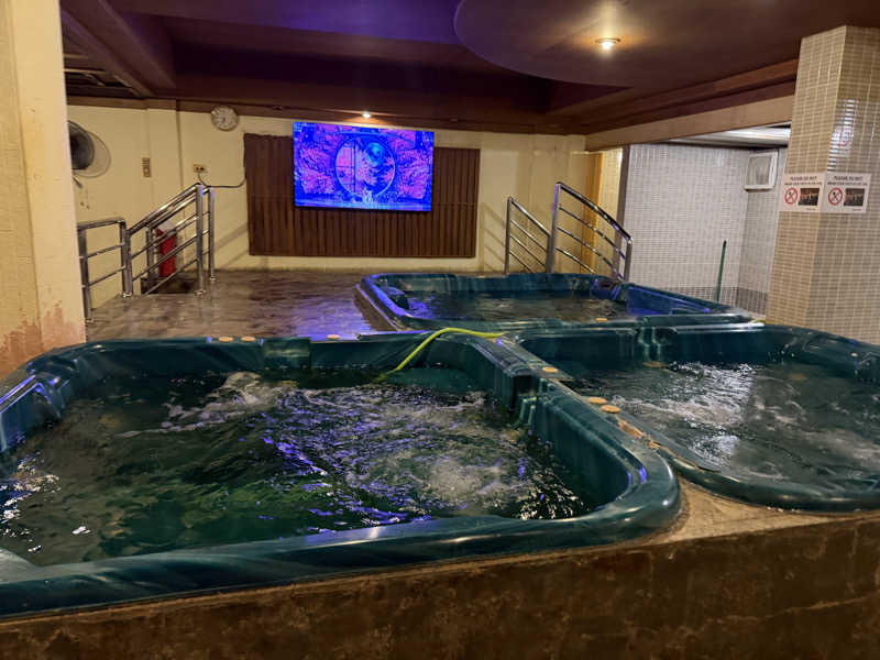 3つの浴槽とサウナのみ。大きなTV画面📺はNHKニュース。先客は中東系のオジサン一人。すぐ帰っちゃったからあとはソロ独占状態です🥳。薄暗いサウナはL字2段席で結構熱く、ジックリ汗💦を流してから水風呂へ。水風呂は多分20℃前後。でもこの季節、外気温35℃を超えるこの国ではそれが気持ちいいね🤤。ちょっと歩いただけで汗だくだったし💦