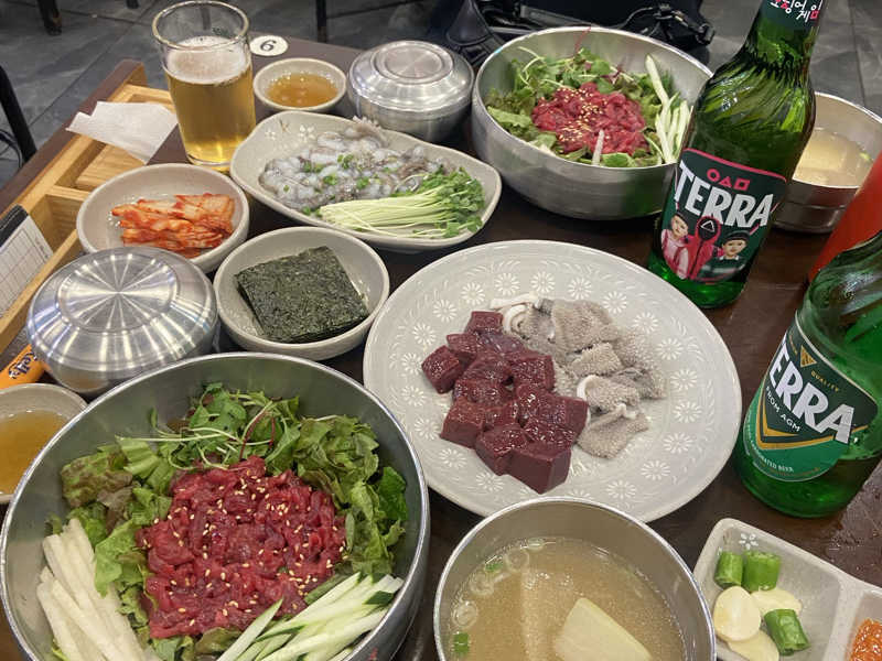 昌信育会にて。ブチョンは入れずその隣のお店。とても美味しい。動く生ダコや生レバーも素晴らしかった
