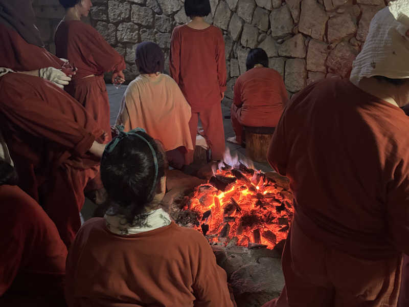 炭火の周りを囲むところに参加
