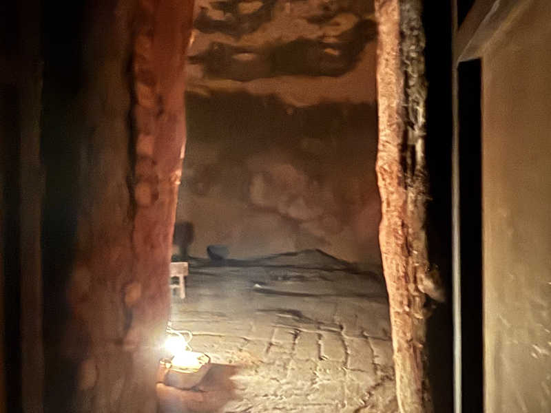 木板が敷いてある洞窟がいくつかあり、中に座り込んで暖まるスタイルです。