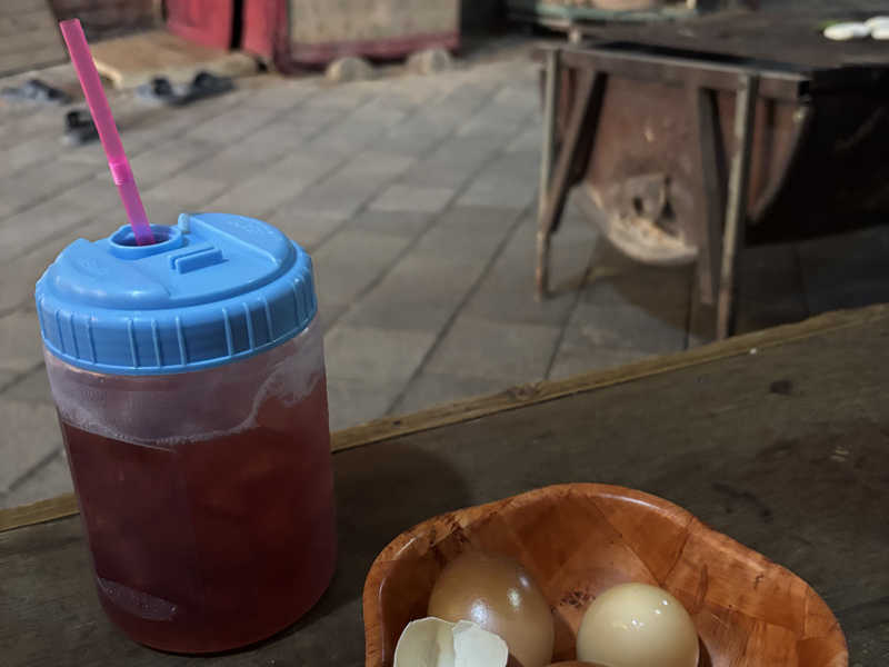 🈂️後は気になってたゆで卵とシッケ〜初めて飲んだけどハマった。缶ジュースで見つけたからお土産で購入しました〜
