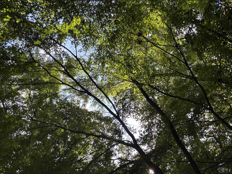 まだ青いモミジを仰ぎながら
