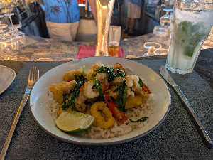 海老スープベトナム風チーズ、ココナッツアイス。カクテル、ワインやラム。これインクルーシブはあり得ない