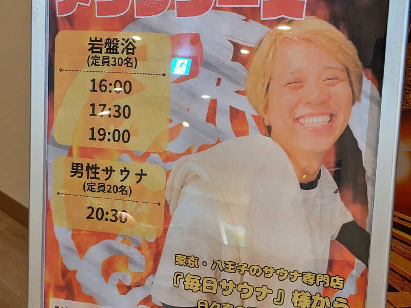 ここも岩盤浴 レストラン 仮眠スペース リクライナーあって1日いれるタイプのスーパー銭湯