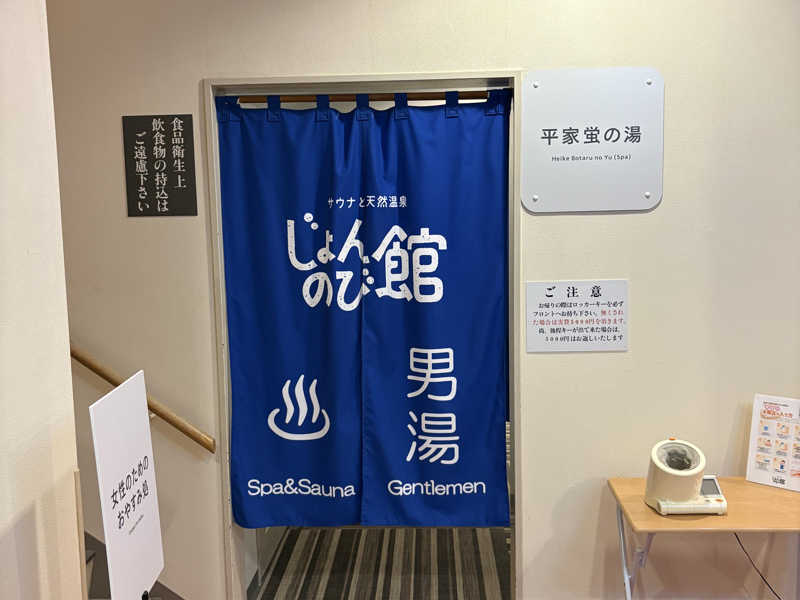 先週豊蒸祭の〆としてじょんのび館に訪問したがその時は源氏の方だったので1週間置いて平家の方に訪問。開店直後に入店したらボディーソープの試供品が配布されていた。