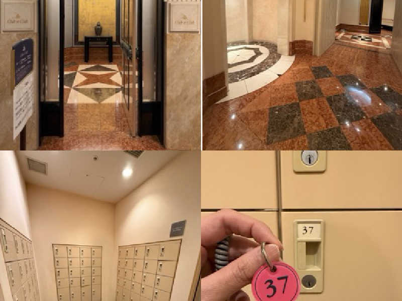 3Fの受付で下駄箱とロッカーの鍵受け取り。階段上がった4Fで男女別れる。