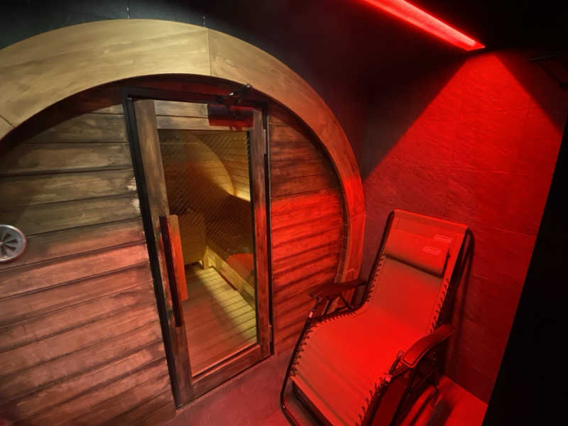 サウナはバレルサウナでおこもり感があり、受付で選んだアロマでロウリュが出来て温度・湿度が自分で調整出来ます。