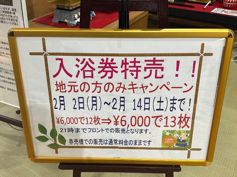風呂の日の半額券利用で300円。スタンプ押してくれたから実質200円台で利用させて頂きました🙏✨