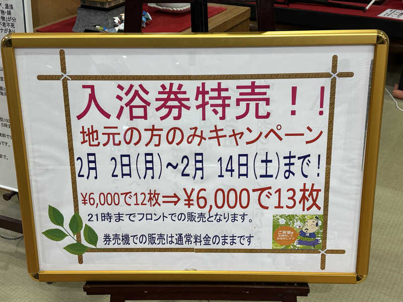 明日は、26日で入浴半額券くれるらしい。