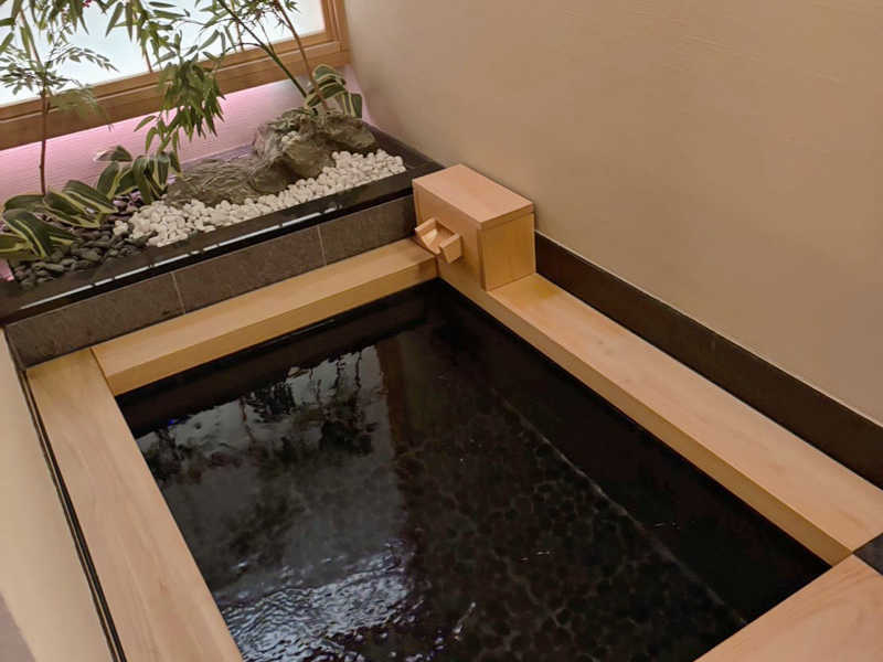 日本庭園のような設えの湯船と水風呂が、左右に並ぶ