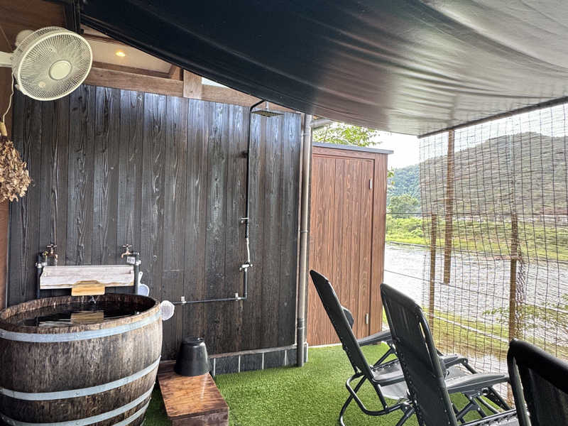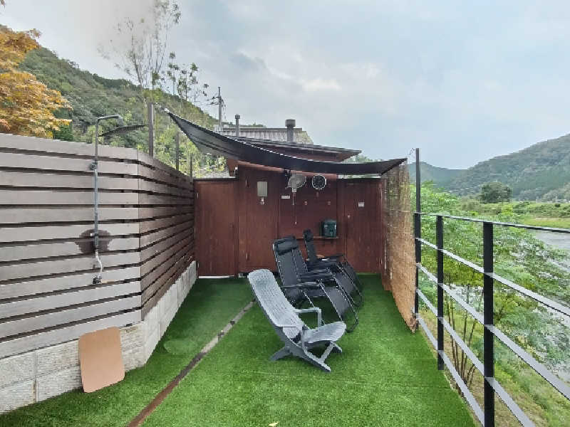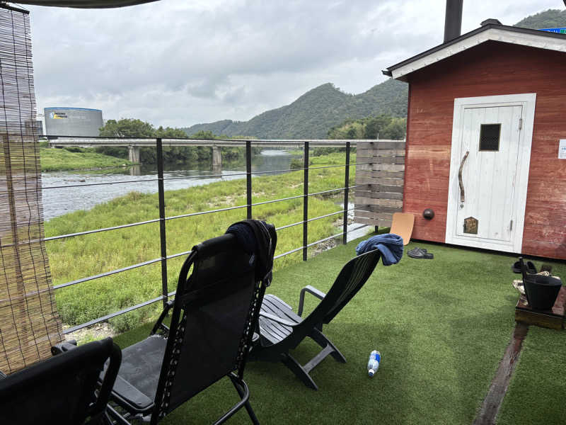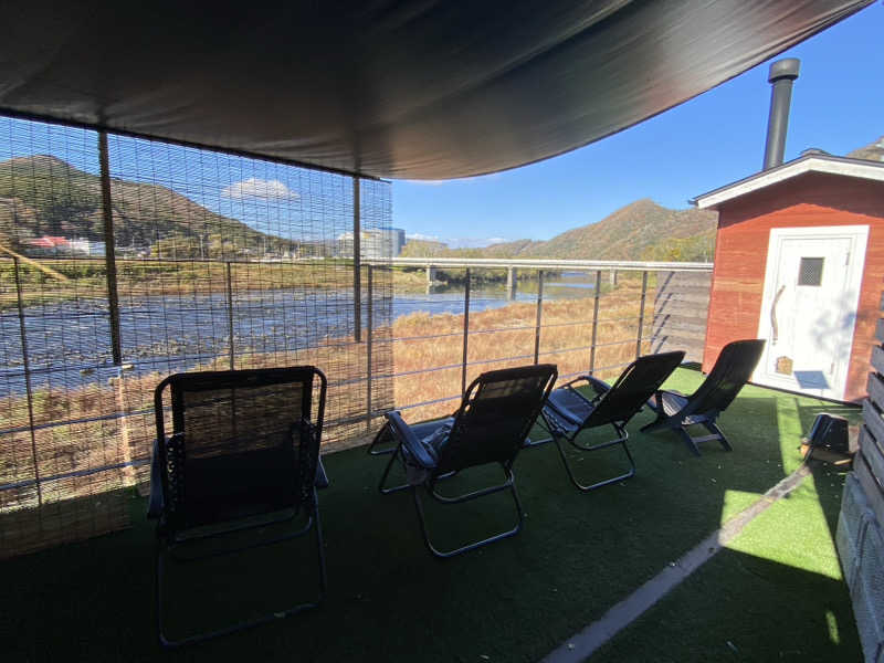 その後はインフィニティチェアで清流を眺めながらの外気浴。道路のすぐ横なので車の音は少し気になりますが、眺めはサイコウです。