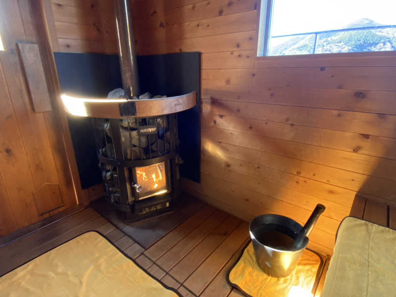 薪ストーブいいですね。熱が柔らかい気がします。15分毎にスタッフさんが薪をくべに来てくれます🔥
