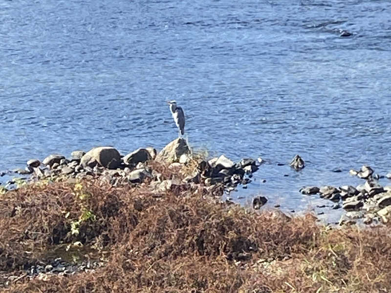 鷺が小魚を啄ばむ姿も見えて湯郷温泉近くだけに趣有り
