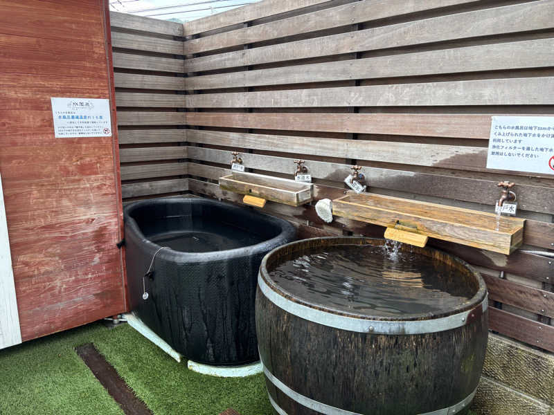 地下水かけ流しのウイスキー樽水風呂と、チラーの効いた水風呂。どちらもたまりません。