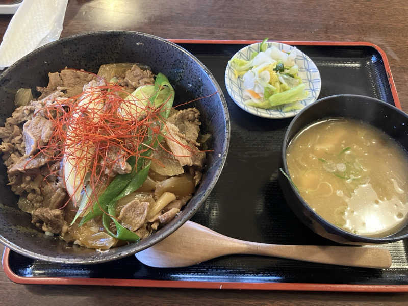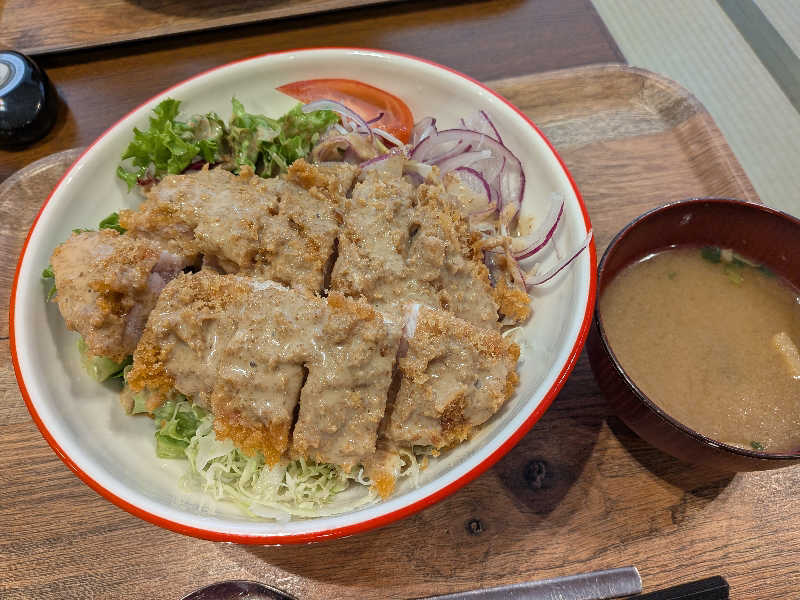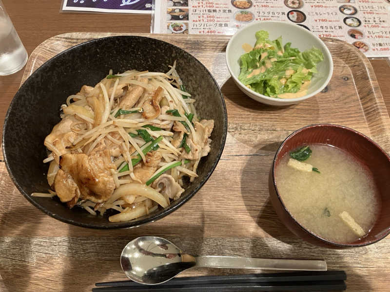 食事もサウナ飯ばりのポークカルビ丼を施設内のレストランで賞味