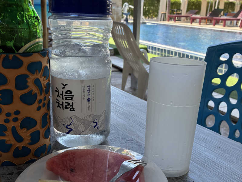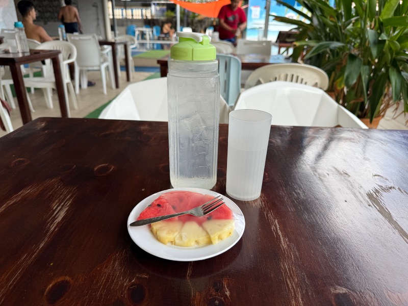 休憩してるとパイナップルとスイカとお水が運ばれてくる。