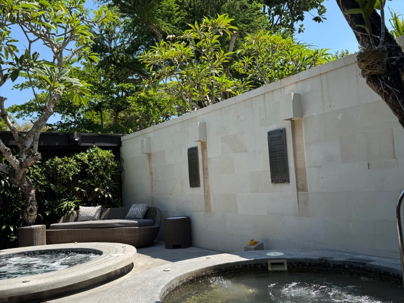 さらに外気浴。サウナは周りから目隠しされているがソファに寝転ぶと、青空とバリの高級リゾートの緑が。素晴らしい。