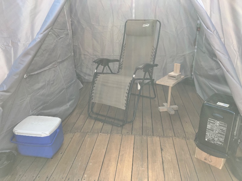 フレッシュエアー取り込みのため、小屋のドア開放とサウナ室のドアにも僅かに開ける。