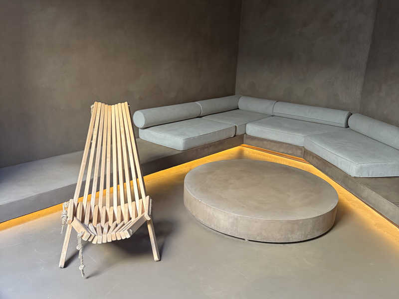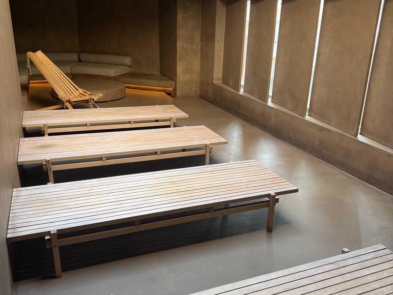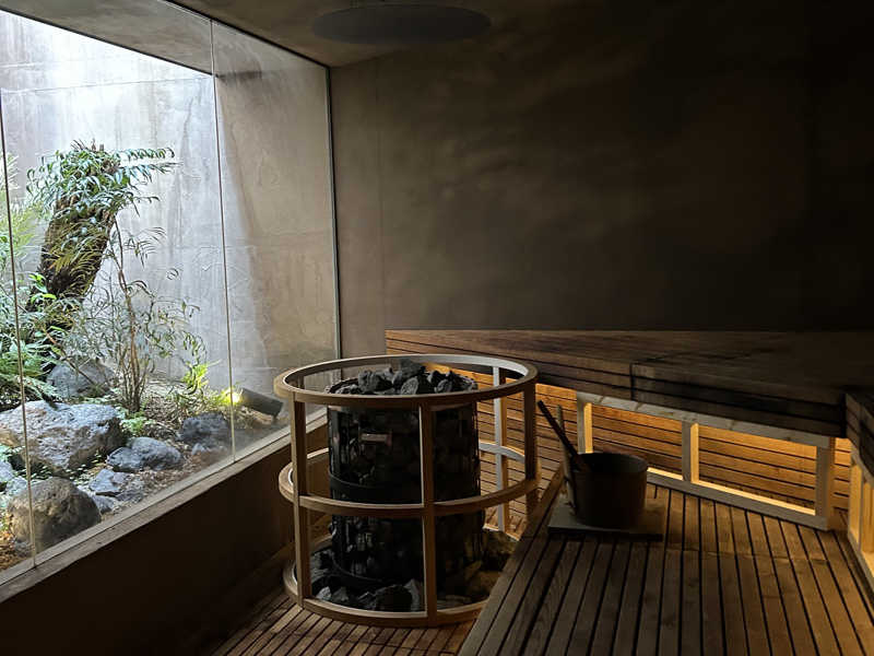 サ室はセルフロウリュですが、外に大きな窓から木などの自然が見えたり広くていい。