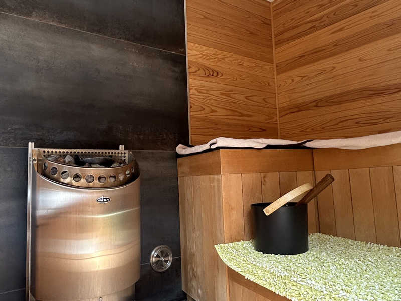 マイルドな温度でじっくり汗をかけるセッティング。セルフロウリュ&セルフアウフグースで体感温度を自由にコントロールできるのが最高!
