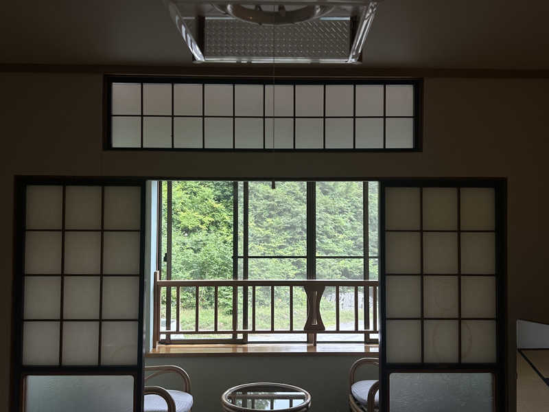 休憩は椅子か、畳スペースでお好きに。少人数であれば、畳スペースで寝転びも。椅子もゆったり深く角度がついているのでめちゃめちゃリラックス。太陽の光を浴びて、紅葉し始めている山を眺めながら。