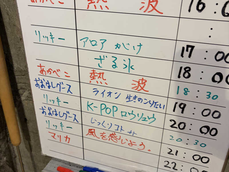 小鍋ロウリユにきりかえた直後に一度離脱、水被ってから大気圏に再突入、気付けば下段席に2人だけ団扇熱波を受け、更なる小鍋ロウリユをやらかしたおおはしさんと共にサ室離脱