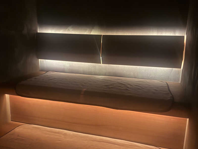 まずは1番奥にあるサ室へ。温度は82度、セルフロウリュ有り。貸切なので仲間と語りながら、長めに入れる。ロウリュで湿度を上げて、じっくりしっかりアチアチ。しかも本日は人気熱波師の豹華ももちゃんも来ていたので、贅沢に独占熱波タイムもあり最高!