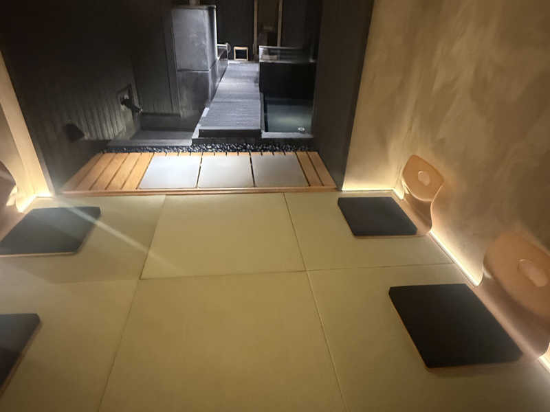 おー完全なる茶室をイメージした和風な作り。そして、ととのい畳スペース、水風呂、サ室の直線美が美しい。