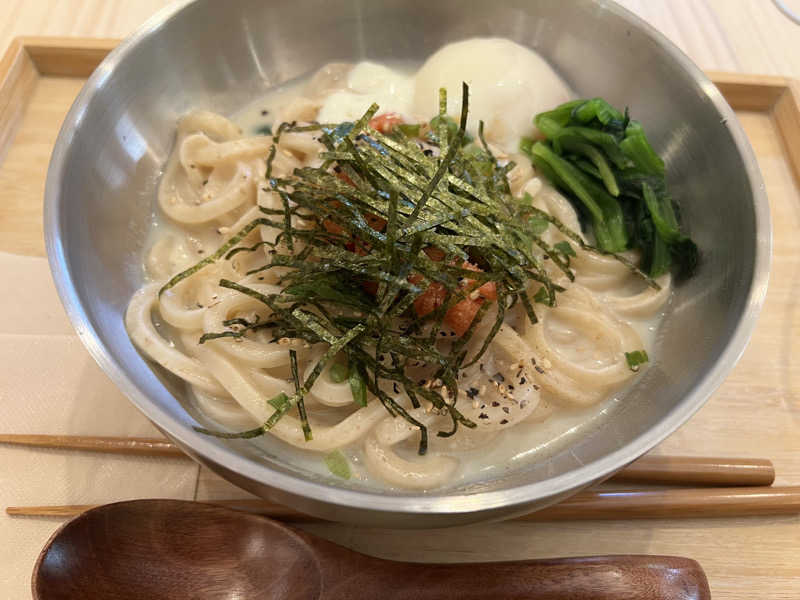 温かいうどん食べてお腹ぽかぽか♨️ 五塔熱子さんから大山牛乳購入するという😳 610+220=830円