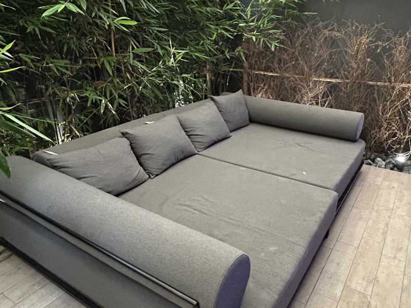 リクライニングデッキチェア2脚と寝転べる大きなクッションソファでゆったりととのえる!