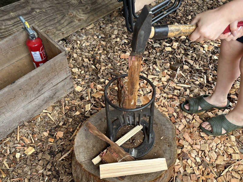 自分達で薪を割って組み立てて、火が育つまでゆっくりするのも贅沢時間🧘♀️