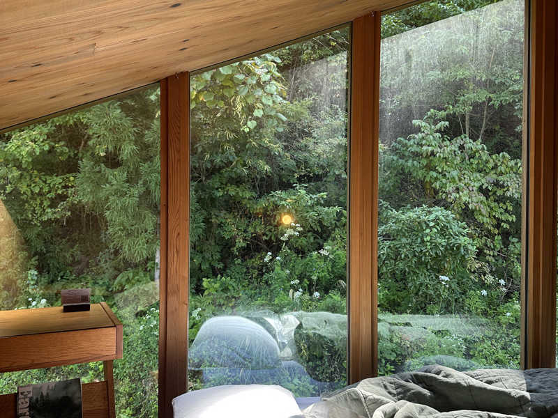 体が溶けるような水風呂に入って脳も体もふらふらになったあとは静かに外気浴🌱動線が完璧すぎて無駄なく整えました。この日はあんまり天気が良くなかったから、雨と虫と風の音を聞きながらリラックス🧘♀️