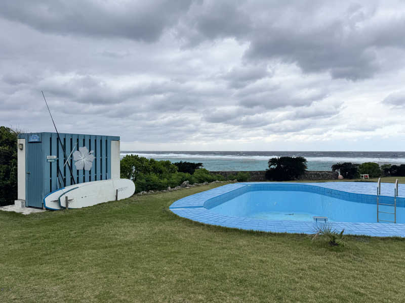 ・…しかしここには水風呂が無い。シャワー室の水シャワーで代用(けどぬるい)。海(品覇海岸)に行けなくもないのだが、少し崖になっており梯子使わないと海に降りられず、サウナあがりには危険そうなので止め。施設のプールを使う手もあるが、追加で1人¥1000かかる(それにシャワー同様ぬるいと思われる)。サウナ室がすこぶる良かっただけに、少々残念。