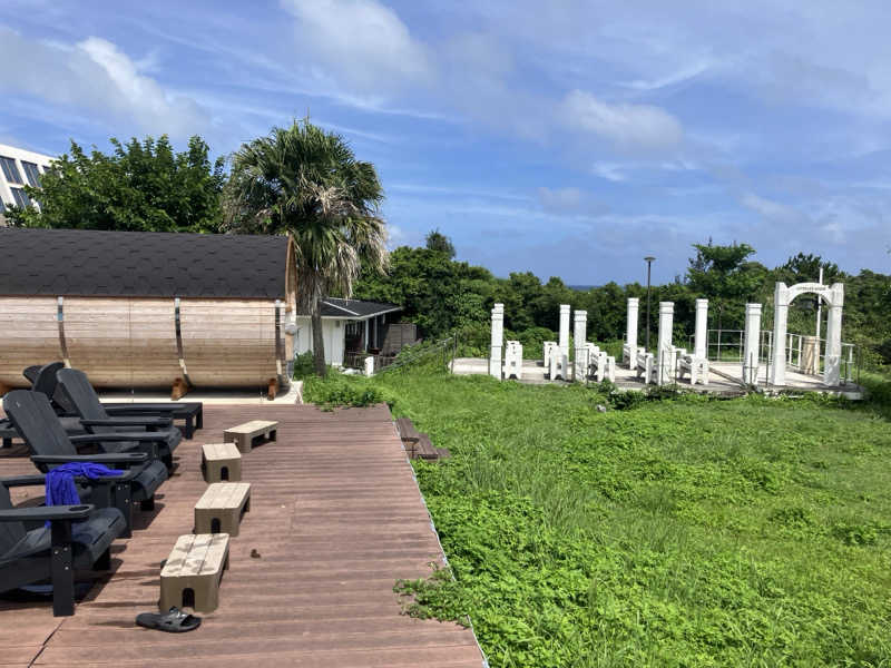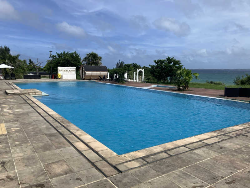 着くと広いプールと端にバレルサウナ🤩