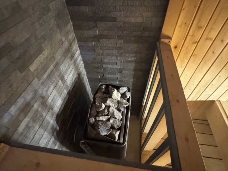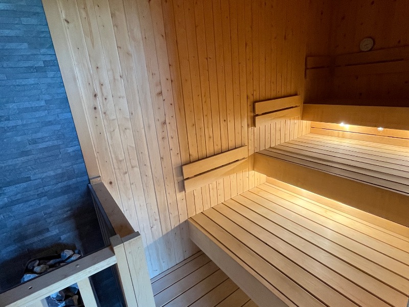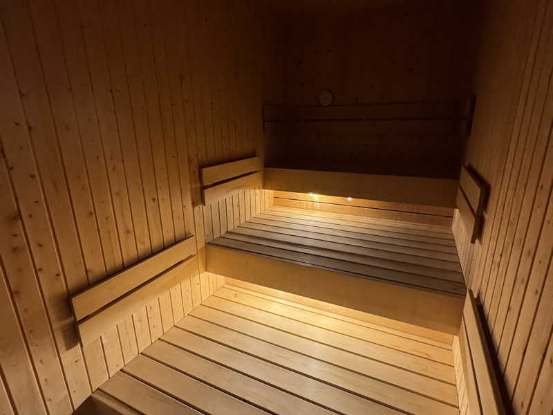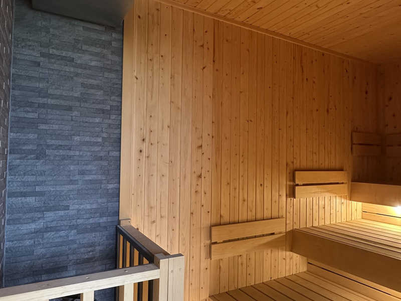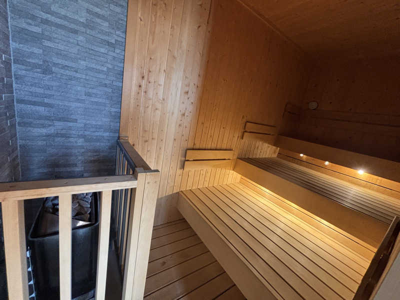 奥に広い3段式の座面!まずはセルフロウリュ🔥して1番上の席へ🧘