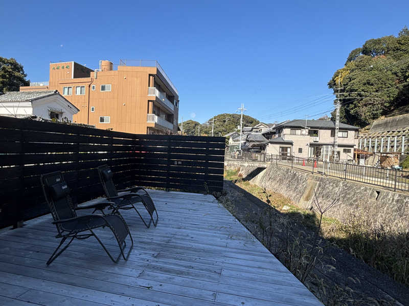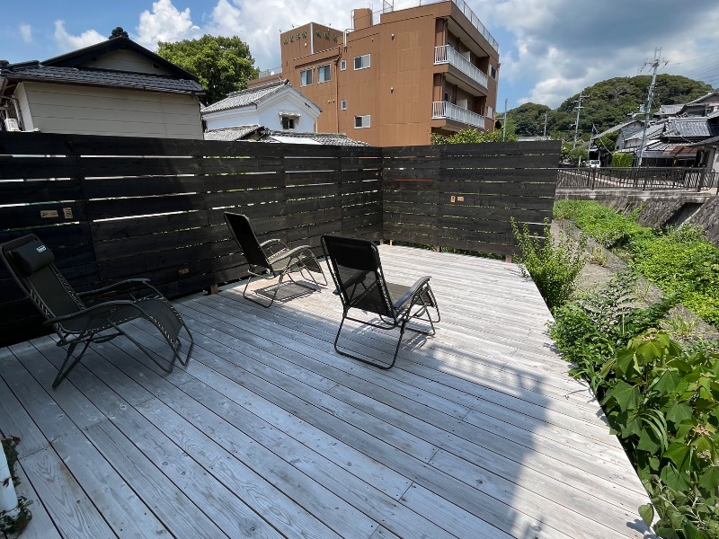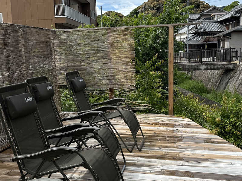 内気浴の横の扉から外気浴に行けてこちらはインフィニティチェアが3脚!