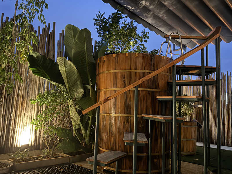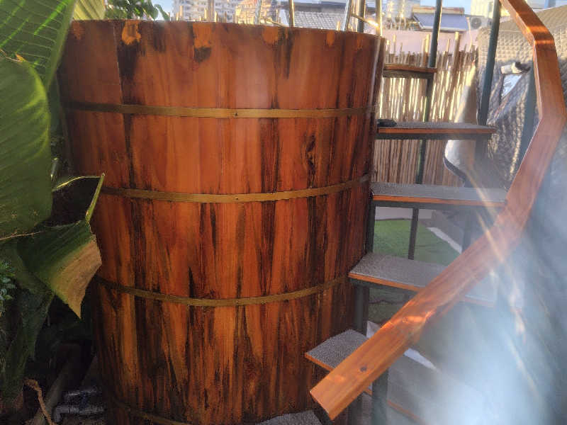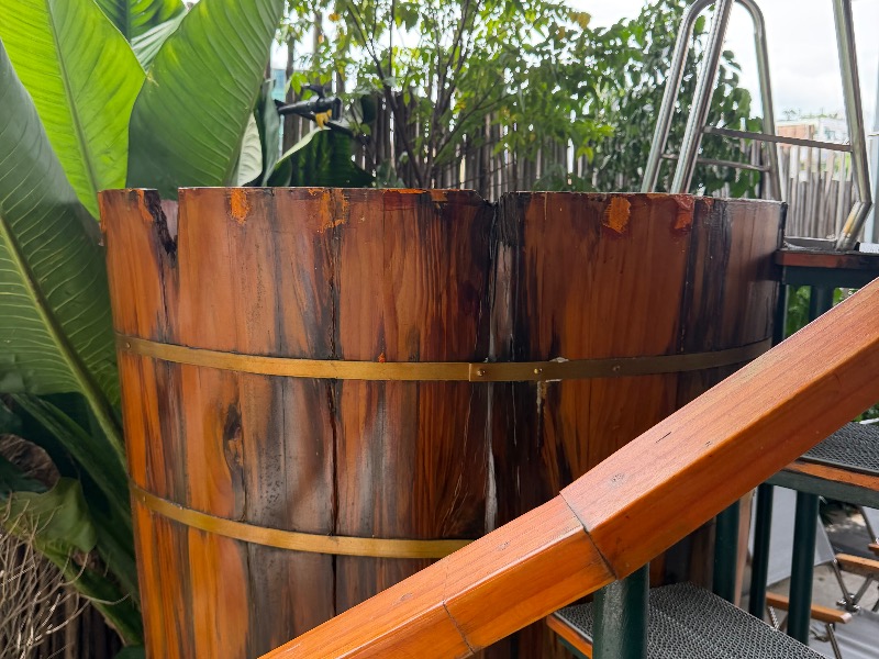 水風呂は巨大な樽です、氷で冷却してくれますが一回だと物足りなかったのでお願いしたら追加で入れてくれました