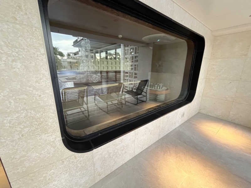 サ室には大きいガラスがあって、夜はホテルのライトアップも楽しめます
