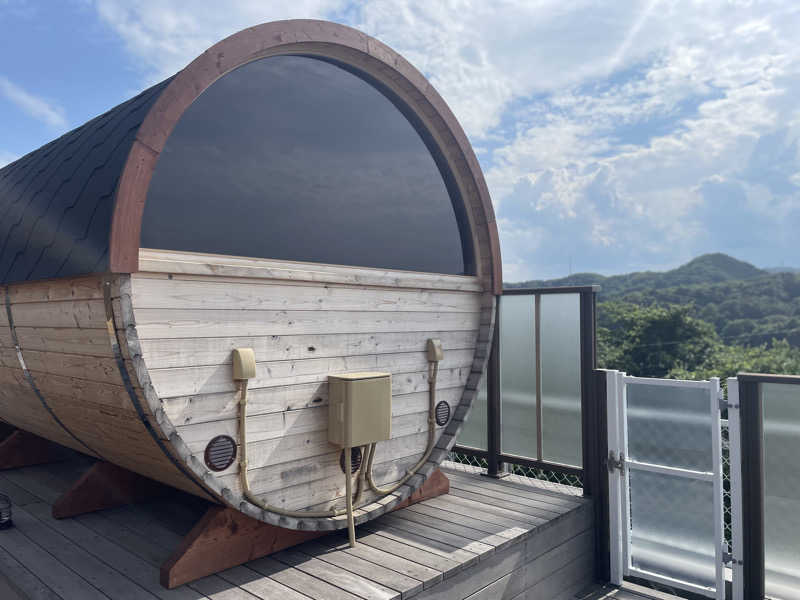 海の見える絶景バレルサウナは105℃の暑めの設定。3分くらいで汗がドバドバ出てくる。ここ最近のサ活で1番汗かいたかも?気持ち良く発汗できた!