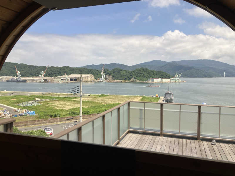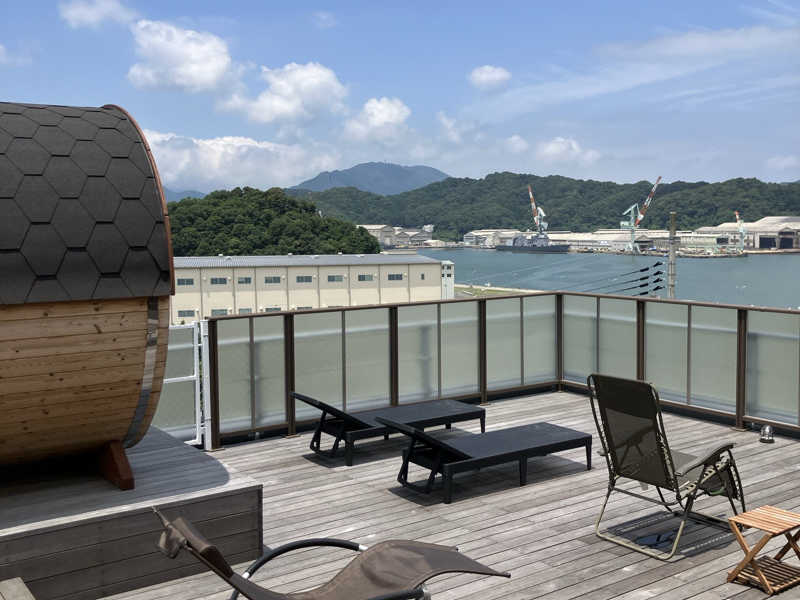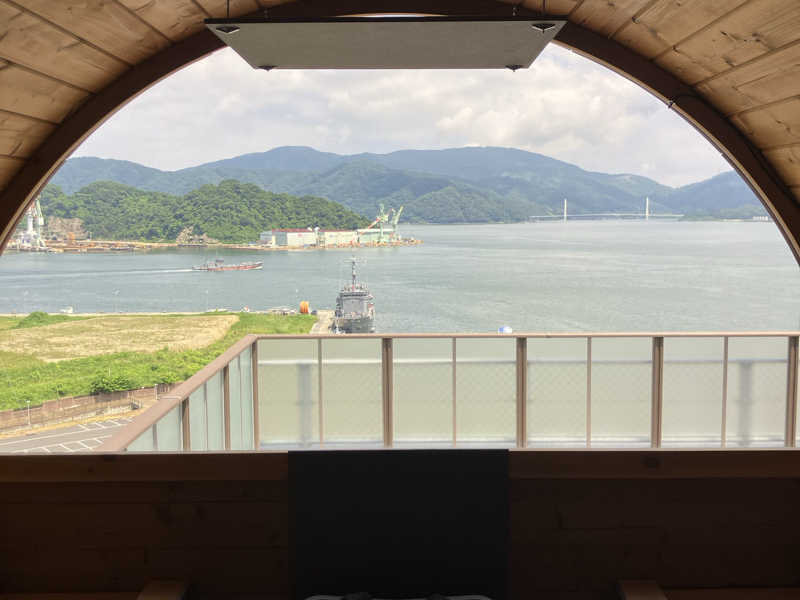バレルサウナから見える景色はとても良く、海上自衛隊の船や舞鶴湾が見えるといったとても贅沢なサウナです。