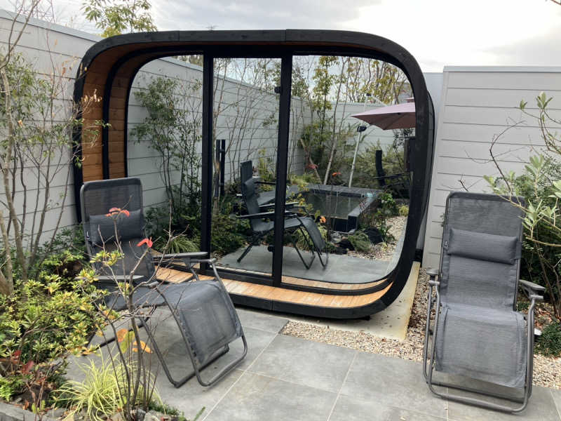 屋外のととのいスペースで、少し肌寒いですがぴりぴりする感じのととのいを味わえ大満足。