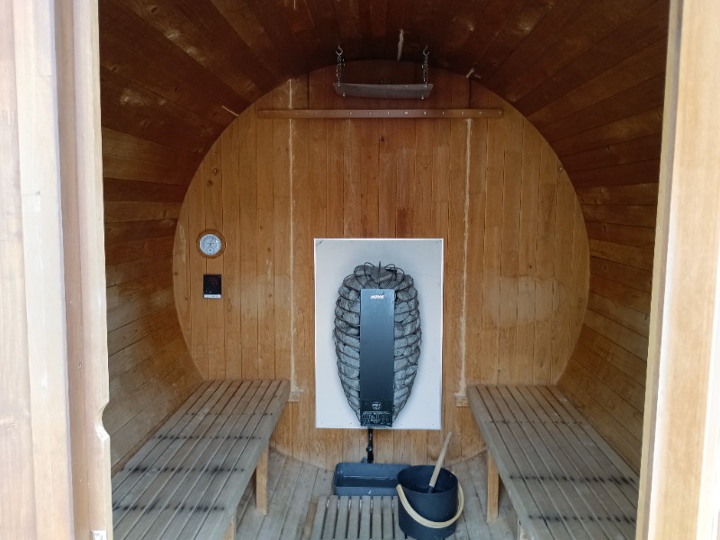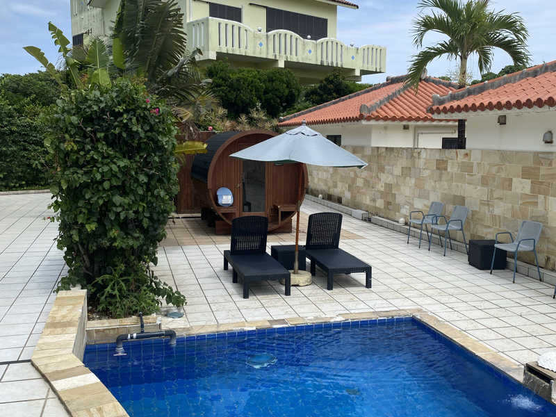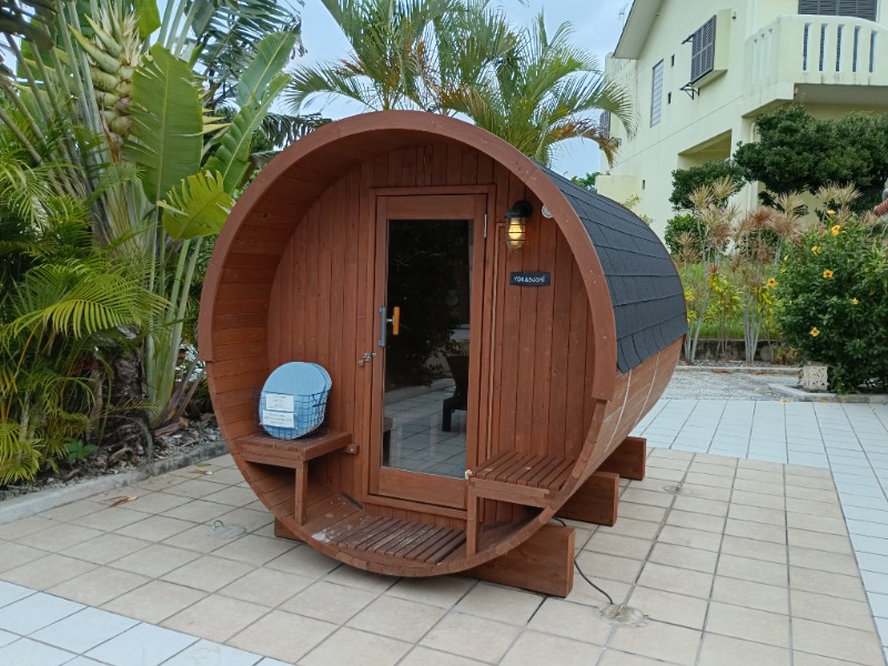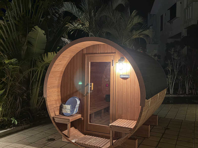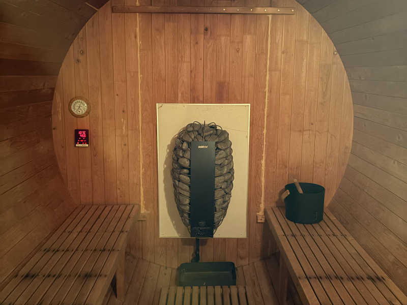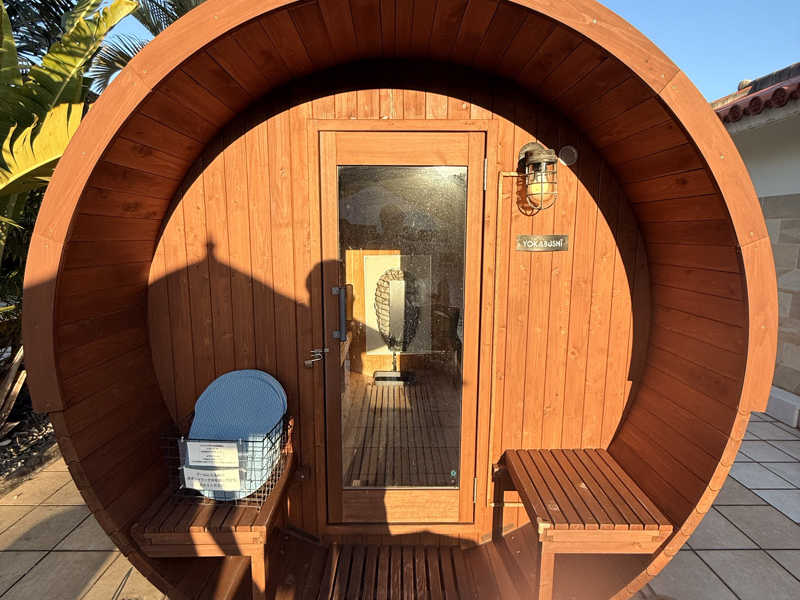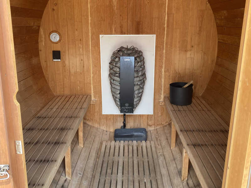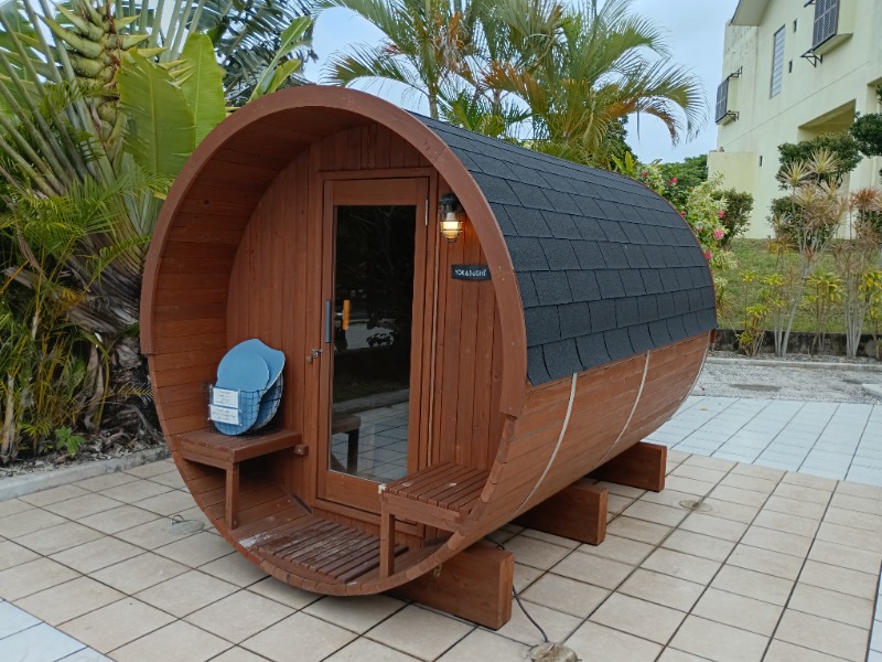 バレルサウナがプールサイドに設置されていて、少しユニークな体験ができました。3時間で3,000円という料金は、かなり満足度が高いと思います。詳細は不明ですが、島割りもあり、地元の人にも優しい価格設定です。