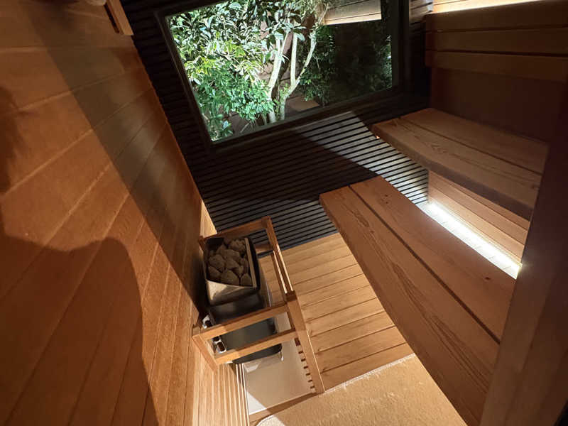 他店とハシゴで訪問、温度が100度としっかり温まることができる。プライベートサウナでは珍しく、下段上段で体感温度も変えられる為、初心者上級者問わず楽しめるサウナだった。