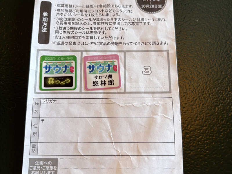 上がってからサウナ巡りの台紙にシール3枚貼られたので写真撮ろうと思っていたのに、気づいたら写真撮り忘れて提出してました。