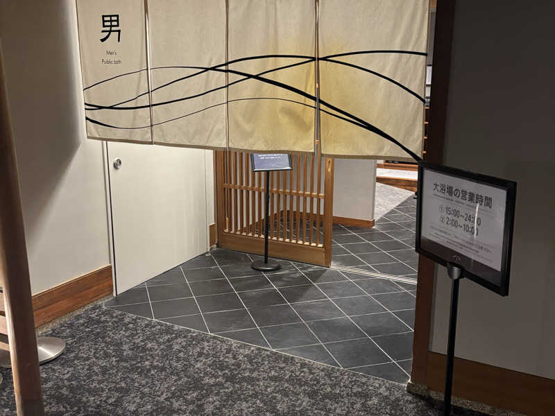 あと、和倉の湯は塩分が強いため、サウナ室の床などは温泉成分が蒸発すると白い跡がのこります。せっかく黒で統一した分逆に目立つので、床マットは同色であるとさらに良くなるかなと思いました。