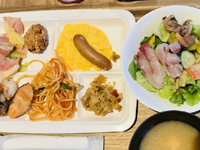サ室は低温でカラッとしているタイプでじんわりと汗をかけるタイプ。水風呂は大きめの壺湯で一人で浸かるととても広々していました。浴場は2階にあるものの、露天スペースの屋根部分は風を引き込みそうな構造になっていて、まわりに高い建物もないせいか風が良く通って外気浴がとても良きでした。世間的には翌日平日なこともあってか、チェックイン後も翌朝もほぼ一人で利用出来て贅沢なプライベートサウナ気分を味わえました。願わくば、水風呂近くの少し空いたスペースに休憩椅子があるととてもうれしい。