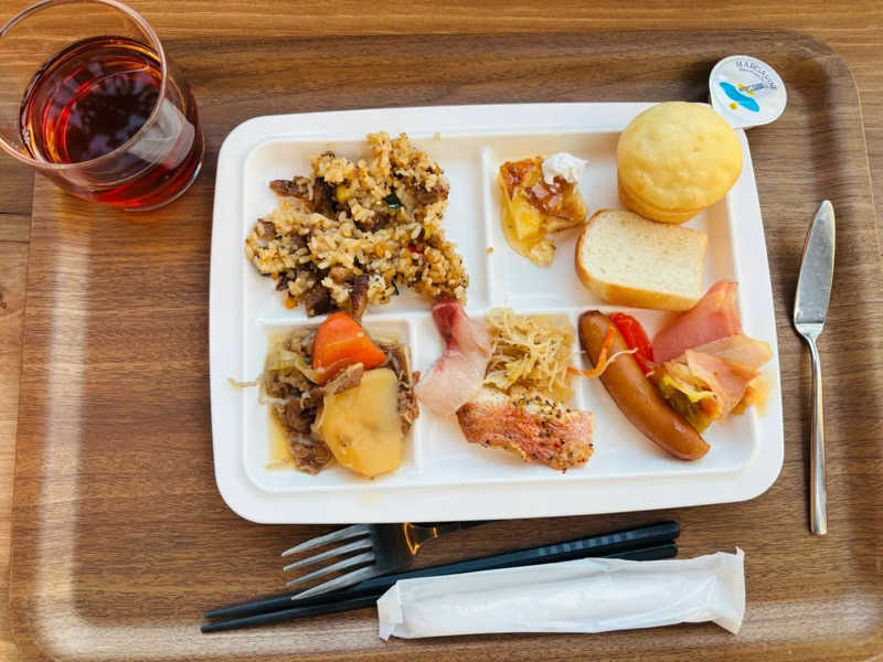 近くに飲食店が無かったので、夕食はホテルのレストランで。気持ち揚げ物が多いメニューの中からビーフライス(牛皿定食みたいなやつ)をチョイス。ホテル併設のレストランは値段高いわりにクオリティが・・・というイメージでしたが、サラダやパテなどオシャレな副菜もついて良かったです。樽生ビールが美味くて疲れた身体に沁みました。そして無料の朝食はクオリティ高しでした。品数はドーミーやカンデオには及ばないものの、クオリティは勝るとも劣らない満足感でした(舌に自信は無いですが…)。朝からカンパチのカルパッチョを頂いて、鉢形城へ意気揚々と向かいました。